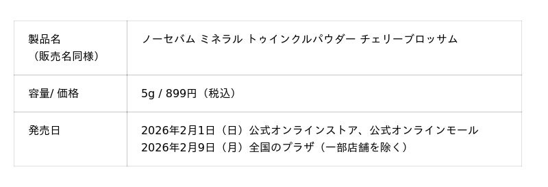 アモーレパシフィックジャパン株式会社(本社:東京都渋谷区)が展開する、自然主義アクティブスキンケアブランド[INNISFREE | イニスフリー]は、“皮脂コントロールパウダー”として人気のアイテム『ノーセバム ミネラルパウダー』から、リミテッドエディション第一弾「チェリーブロッサム」を2026年2月1日(日)より公式オンラインストア、公式オンラインモール、2月9日(月)より全国のプラザ(一部店舗除く)にて数量限定で発売いたします。