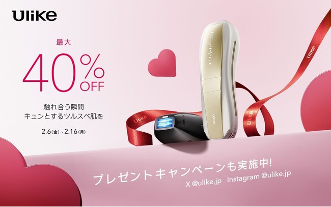 家庭用美容機器メーカー「ユーライクジャパン株式会社」(本社:東京都港区)が展開する、家庭用光美容器3年連続世界No.1(*1)ブランド「Ulike(ユーライク)」は、バレンタインシーズンにあわせて2026年2月6日(金)~2月16日(月)の期間、Ulike公式サイトにてバレンタインキャンペーンを開催いたします。