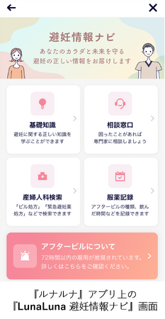 ◆避妊に関する正しい知識提供から、緊急避妊薬服薬後のサポートまで、『ルナルナ』が包括的支援を開始