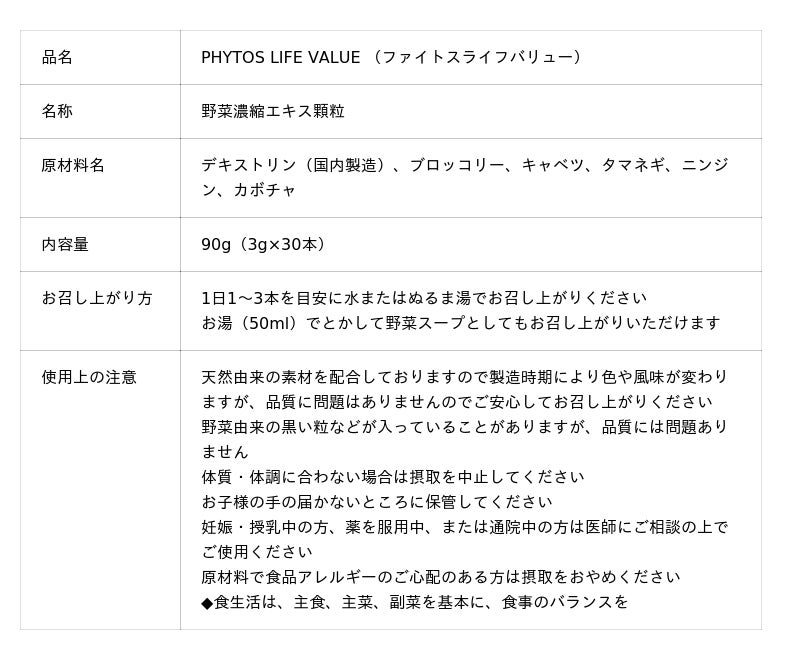 【新発売】特許製法で野菜スープを顆粒化した次世代サプリ「PHYTOS LIFE VALUE」