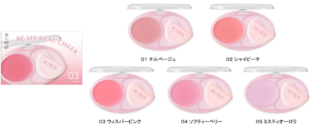 KiSSより、かるふわクリーム質感で、まるでほっぺと一体化したようなじゅんわりツヤほっぺを叶える「ビーマイリアルチーク」が登場。