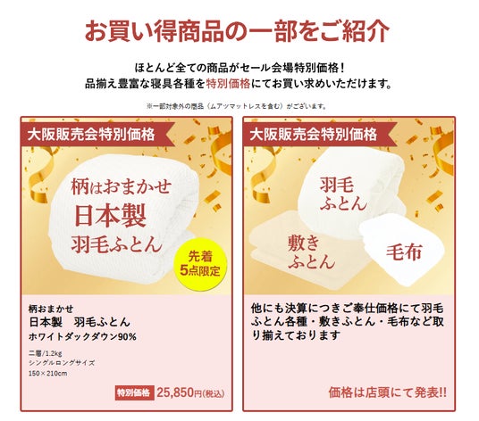 見逃せない4日間【昭和西川】大阪ショールーム最終決算セール開催!<2月20日(金)~23日(月)、旧モデル・在庫品も特別価格にて>
