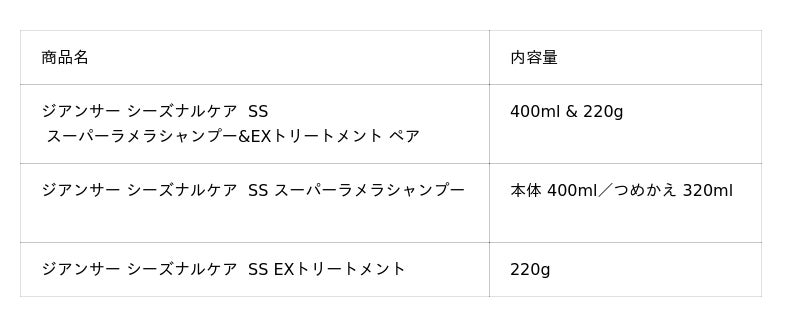 ※店舗では、『ジアンサー シーズナルケア SS スーパーラメラシャンプー&トリートメント ペア』を販売します。