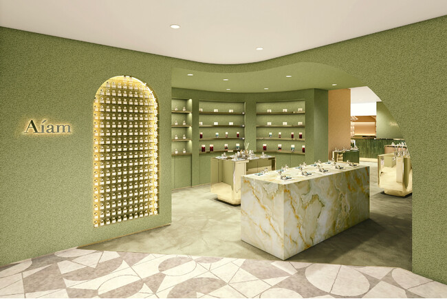 奥行きのある動線と落ち着いたグリーンを基調とした内装に、やわらかな統一感の中で適度な変化を持たせることで、Aiamらしい上質さはそのままに、新たな表情をお楽しみいただけます。