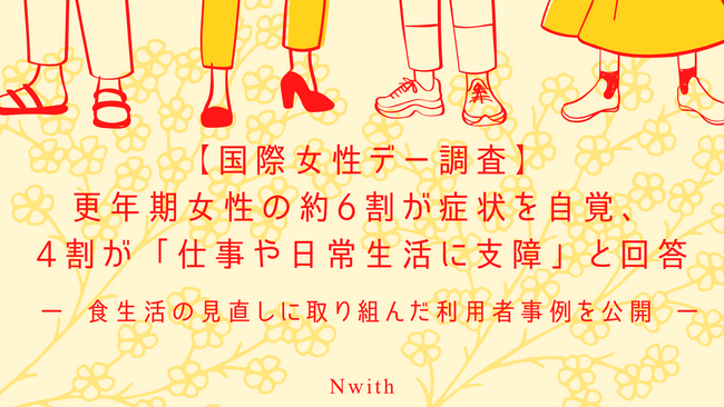 株式会社Nwith(本社:東京都中央区、代表取締役:福澤龍人)は、3月8日の国際女性デーにあわせ、40~55歳女性460 名を対象に「更年期と生活・仕事への影響」に関する調査を実施しました。