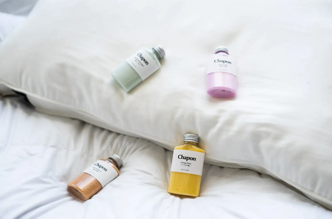 Chaponは「今日の疲れを癒やしたい」そんなバスタイムに寄り添う、植物エッセンスたっぷりの天然アロマ入浴剤として誕生。「喧騒忘れる、しあわせタイム。」というブランドコンセプトのもと、天然アロマ100%の贅沢な香りで忙しい日常を忘れる、特別なくつろぎの時間を提供しています。累計販売本数は25万本を突破。三越伊勢丹やBIRTHDAY BARなどの全国のギフト専門店で取扱開始。バスソルト初グッドデザイン賞受賞、Amazon・楽天 部門ランキング1位獲得。