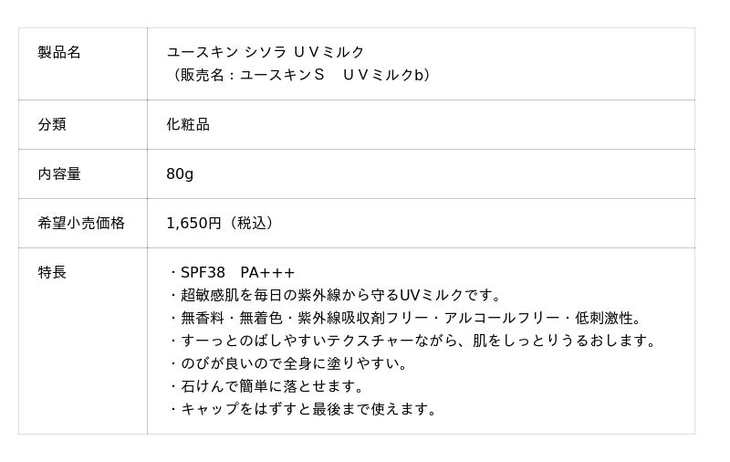 販売名:ユースキンS UVミルクb(化粧品)