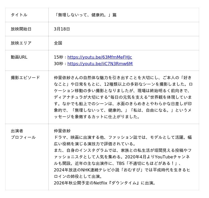 仲里依紗さん出演「ディアナチュラ」新TVCM