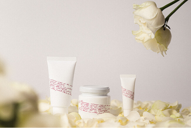パッケージのテーマは、「白いバラ」と日本の伝統色「思色(おもいいろ)」。