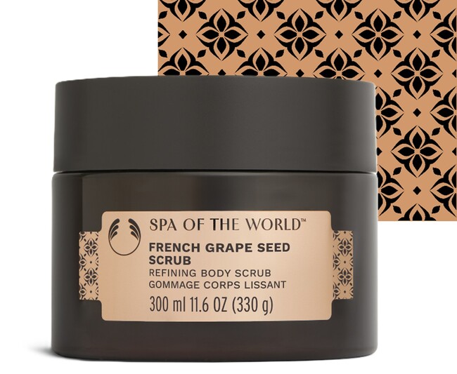世界中を旅して探求した世界各地の伝統美容から生まれたスパオブザワールドコレクションは、こちらのボディ用スクラブ洗浄料「フレンチ グレープシード スクラブ」が新たに加わることで全7種の展開となります。
