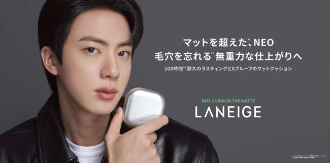 Jinは「ラネージュ ネオクッションでの新しい姿をお披露目できて嬉しいです」とコメントし、「これからアルバム活動やコンサートなど、さまざまな姿でファンの皆さんにお会いする予定です。僕とBTS、そしてラネージュにたくさんの関心と愛をお願いします」と語りました。