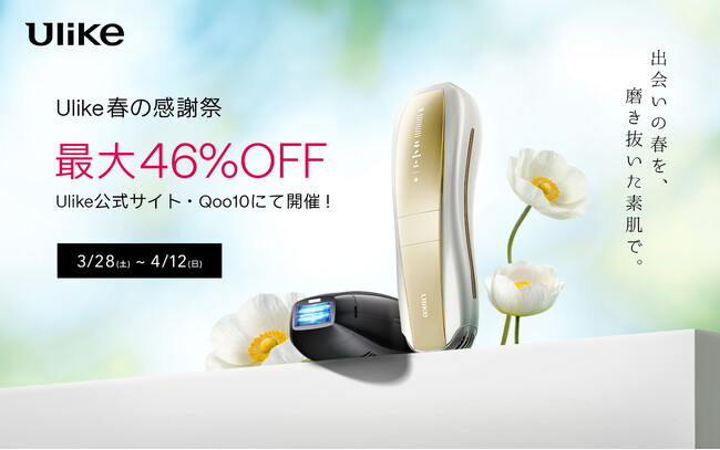 家庭用美容機器メーカー「ユーライクジャパン株式会社」(本社:東京都港区)が展開する、家庭用光美容器3年連続世界No.1(*1)ブランド「Ulike(ユーライク)」 は、Ulike公式サイト及びQoo10公式ストアにて『春の感謝祭キャンペーン』を開催いたします。