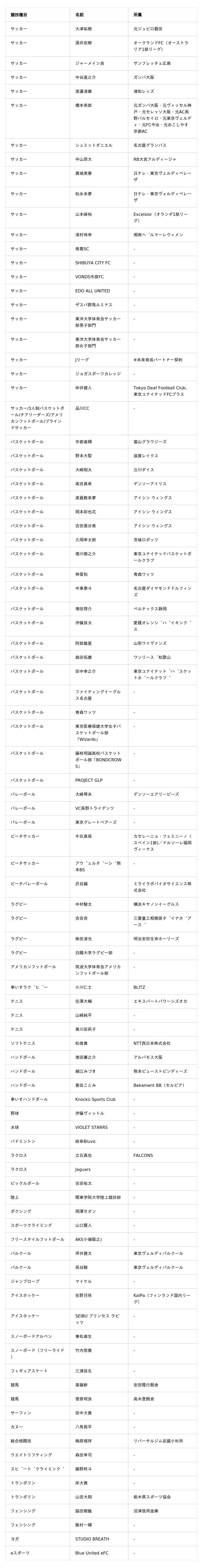 <BASE UP SPORTS サプライヤー契約一覧(現時点)>