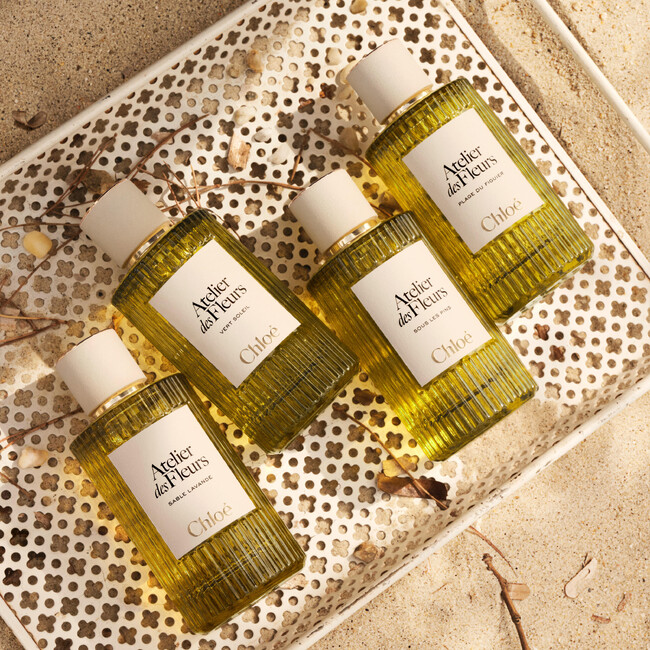 地中海の自然と光にインスピレーションを得た、〈アトリエ デ フルール〉のフレグランス コレクション「メディテラニアン(地中海の) エッセンス」。陽光に満ちた海岸の小道、松林を抜ける風、温かな砂の香り──南フランスの風景を思わせる素材を通して、クロエの自由で感覚的な美学を香りで表現します。