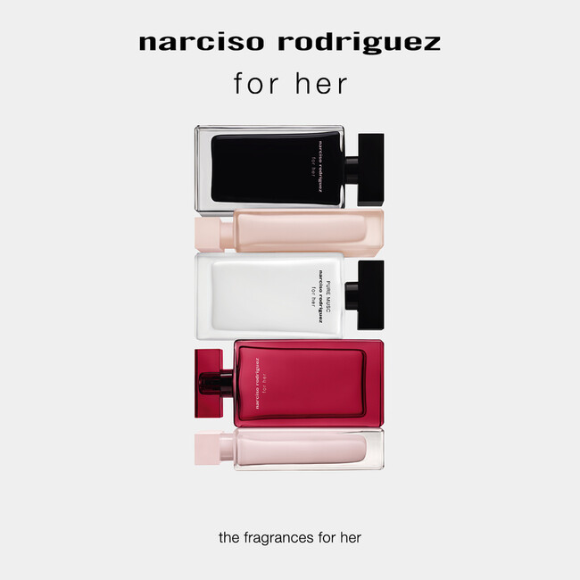“エレガンス”の建築家と呼ばれるナルシソ・ロドリゲスの作品とインスピレーションの源は、女性。ナルシソ ロドリゲスの共通するハートオブムスクは、エレガントと官能性を表現しています。それは人を永遠に虜にするユニークなシグネチャーセントであり、肌に纏った時にその魅力を発揮する、本当の意味での「肌の香水」です。