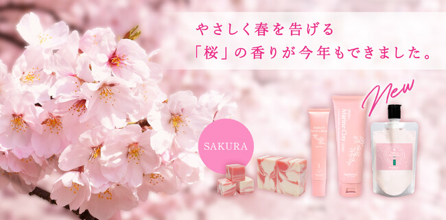 定番のホワイトマリンクレイ洗顔石鹸とエッセンスハンドクリームは、桜をイメージしたピンク色の新容器で今年も登場。さらに新たなラインナップとして、大人気のタラソマリンクレイ洗顔石鹸にも「桜の香り」が仲間入りします。加えて、ボタニカルハンドメイド洗顔石鹸とボタニカルハンドメイドCUBE石鹸も引き続き展開し、全5種のラインナップで季節限定の「桜の香り」をお楽しみいただけます。