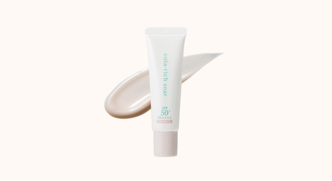 20年以上のコラーゲン(※3)研究知見を活かし、2025年4月に誕生した「cola・rich soar(コラリッチ ソア)」。朝と夜の肌環境に合わせた24時間コラーゲン(※3)ケアを提案する、大人の肌のためのエイジングケア(※6)シリーズです。お客さまのお悩みの中で多くなっている”くすみ(※1)悩み”に着目し、昨年発売した朝用・夜用美容液、化粧水、クリームのラインナップに加え、この度、待望のUV下地が誕生します。日中の紫外線から肌を守るだけでなく、スキンケアとメイクアップの両面から、大人世代特有のくすみ(※1)悩みに多角的にアプローチ。春から夏にかけて紫外線量が増加する季節、日中も美容液級のケアで肌を守るワンランク上のエイジングケア(※6)を叶えながら、ピンクベージュの下地が自然な血色感(※4)と透明感で大人の垢抜け美肌を実現します。