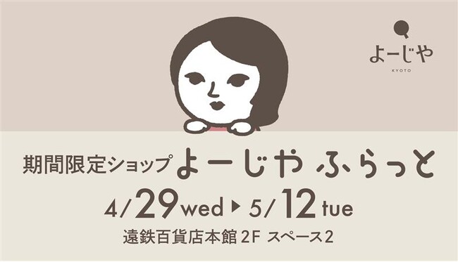 株式会社よーじや(京都府京都市下京区、代表取締役・國枝昂)が運営する、京都発のライフスタイルブランド「よーじや」は、2026年4月29日(水・祝)~5月12日(火)の期間、静岡県・遠鉄百貨店にて期間限定ショップ「よーじやふらっと」を開催いたします。本イベントでは、季節限定「ひんやり」シリーズや新商品などを幅広くご用意。さらに、購入条件に応じたプレゼントキャンペーンなども実施し、スペシャルな内容となっております。2週間限定のイベントなので、この機会をお見逃しなく。