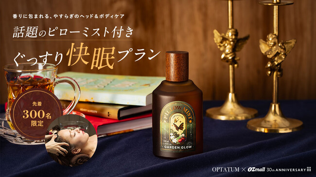 韓国発のラグジュアリーフレグランスブランド「OPTATUM」と、今年2026年10月で30周年を迎えるOZmallが企画する厳選リラクゼーションサロンとの特別コラボプランが登場。快眠ピローミストの香りに包まれながら、トータル90分以上のヘッド&ボディケアを体験できるプランは、柔らかな香りとプロの手技が相まって、至福のリラックスタイムに。さらに、施術でも使用する「OPTATUM Pillow Mist Garden Glow」をプレゼント。枕はもちろん、ベッド周りに吹き掛ければ、心地のよい眠りへと導きます。