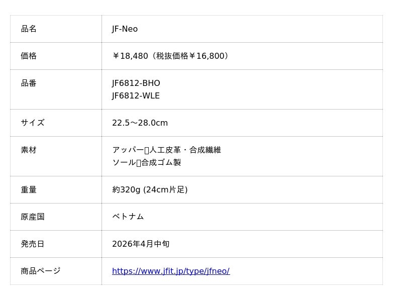 ゼット株式会社(本社/大阪市天王寺区、代表取締役社長/渡辺裕之)のオリジナルブランド『JFIT』(ジェイフィット)は、エアロビクスやステップなど多様な動きに対応するフィットネスシューズ『JF-Neo』より、デザイン性と機能性を兼ね備えた新色2モデルを2026年4月中旬に発売しました。
