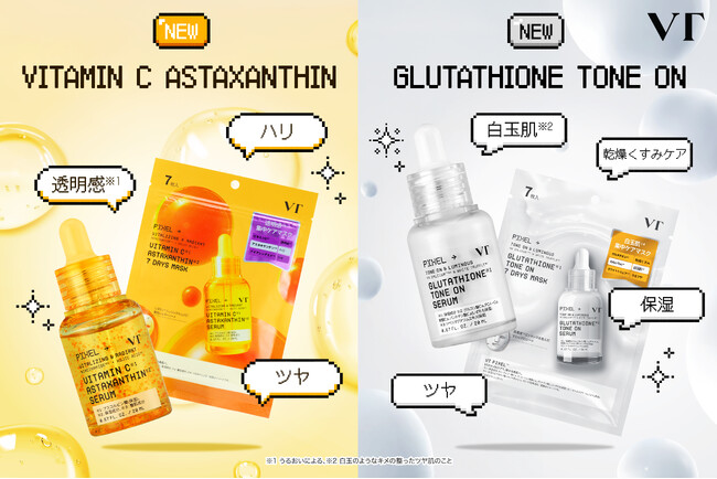 韓国発のスキンケアブランド「VT COSMETICS」は、2026年4月18日(土)より、VT独自のPIXEL工法を新たに採用した「ビタミンC アスタキサンチン」ラインと「グルタチオン トーンオン」ラインを順次発売開始いたします。