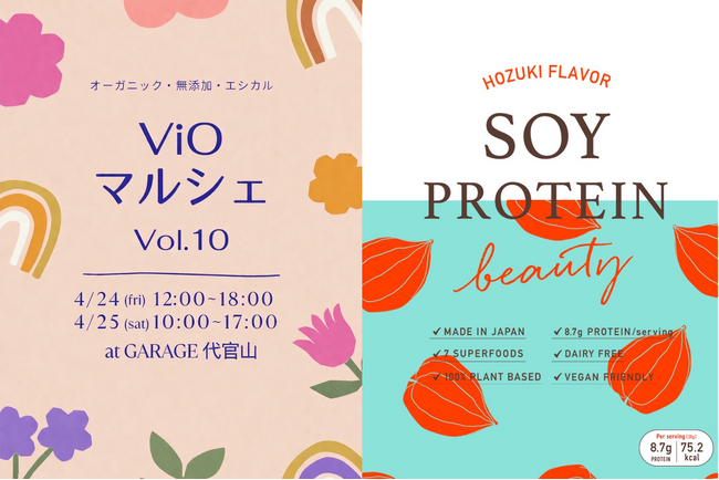 ViOマルシェは、オーガニック・無添加商品の製造・販売者が集う産直マルシェです。ハリウッドからは、大豆プロテインブランド「ソイプロビューティ」を含む3ブランドが参加。ソイプロビューティからは、2026年5月22日(金)に発売予定の新フレーバー「ソイプロビューティ ほおずき」を、発売に先駆けて初披露します。そのほか、オーガニック・無添加商品の魅力をご体感いただけるアイテムをお届けします。