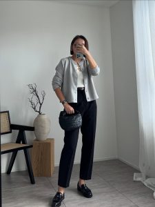 程よい厚みとグレージュカラーが今年っぽい。カーデが主役の洗練スタイル【40代の毎日コーデ】