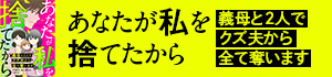 幸せな結婚生活を送っていた姫奈は、‟ある問題“で悩んでいた。夫はバツイチで、前妻との間の息子に会いにいく…。過去に姫奈は元カレに裏切られ、傷心しきっていた時に上司である満に救われる。そしてその後、助けになってくれた満と略奪婚。満の息子・翼への罪悪感から、我慢しなければならないと思っていたが、夫の浮気が発覚!最初はシタ側だった私が、サレ妻になっていた――。