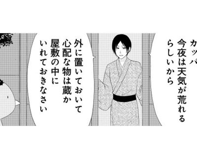 今夜は天気が荒れるからと、カッパに外にあると心配なものをしまうように指示したら…!?【ウチの百鬼夜行 #16】