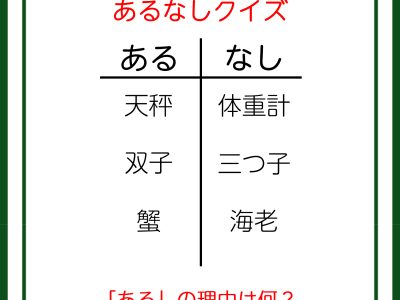 あるなしクイズです!「天秤にあって体重計にない。蟹にあって海老にない」ある側の法則とは?【難易度LV3.・中辛】