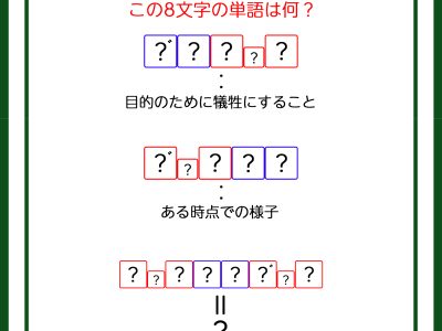 クイズです!「ヒントから8文字の言葉を読み解きましょう」目的のために犠牲にすること、を言葉にすると?【難易度LV3.・中辛】