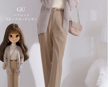 定番【GU】ユニセックスカーデが万能!ベージュで淡色ワントーンにしてみたら……【40代の毎日コーデ】