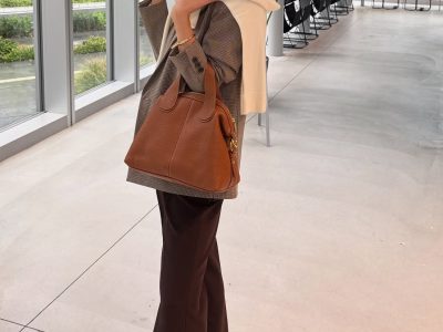 【ユニクロ】カシミヤタッチニットで魅せる!旬のブラウンを効かせた洗練肩掛けテク【40代の毎日コーデ】