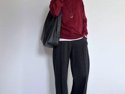 全身【ユニクロ】。おしゃれ色ニット×ワイドパンツをバランスよく彩るレイヤードテクとは【40代の毎日コーデ】