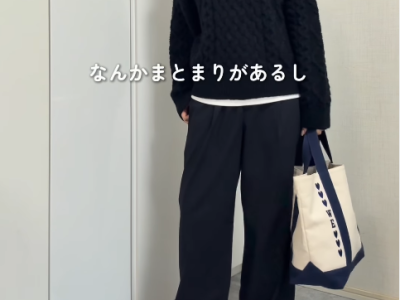 ユニクロの白ニット×ネイビーパンツで魅せる、大人の品格コーデ。ポイントはニットのきちんと感【40代の毎日コーデ】