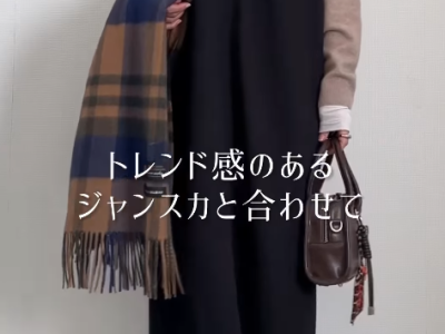 寒い日はユニクロのカシミヤニットで。×ジャンパースカートで作るレイヤード術【40代の毎日コーデ】
