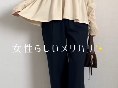 ペプラムニットは大人のコンサバコーデの最適解。ユニクロの銘品パンツ合わせで気になるお腹&ヒップもスマートにカバー【40代の毎日コーデ】