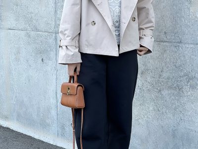 156㎝でキッズサイズをセレクト。着心地とシルエットが優秀な【ユニクロ】パンツでつくるショートトレンチスタイル【40代の毎日コーデ】