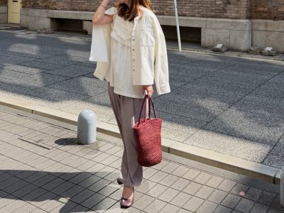 ZARAのオーバーサイズ白ジャケットが主役。×ワイドデニムで作るこなれ感ある春の着こなし【40代の毎日コーデ】