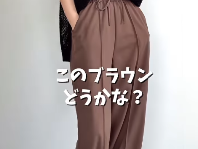 流行の「ブラウン」は、パンツ投入で失敗なし。黒透けトップス合わせで大人の余裕コーデが完成【40代の毎日コーデ】
